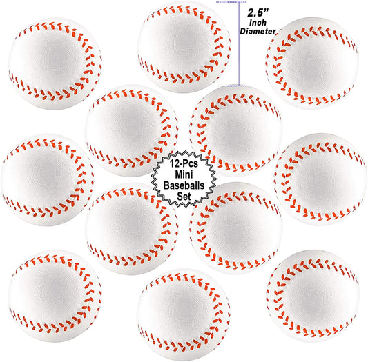 Mini Sports Balls for Kids Party Favor Toy, Soccer Ball, Basketball, Football, Baseball (12 Pack) Squeeze Foam for Stress, Anxiety Relief, Relaxation. (12 Pack (Baseballs))